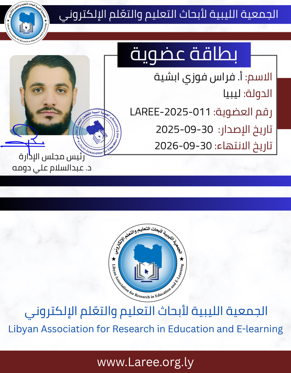نموذج انتساب للجمعية الليبية لأبحاث التعليم والتعّلم الإلكتروني